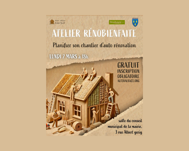 L’association Alter Alsace énergie, spécialisée dans l’auto-rénovation et la planification de chantier, vous donne rendez-vous* le lundi 2 mars à 18h en salle du conseil municipal.