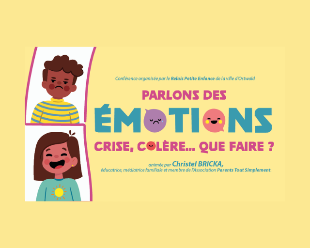 Les structures petite enfance de la Ville d’Ostwald organisent une conférence ouverte aux parents et aux professionnel·le·s de la petite enfance, autour d’un sujet essentiel : la gestion des émotions. Elle aura lieu le vendredi 17 octobre 2025 à 20h dans la salle du Conseil – Mairie d’Ostwald, 3 rue Albert Gerig.