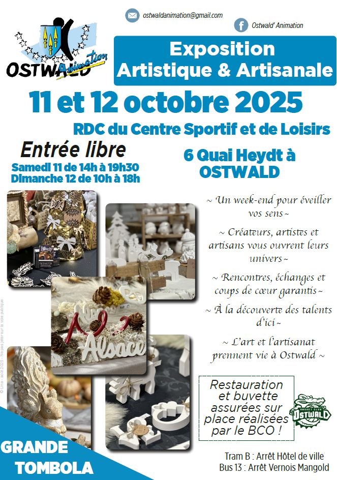 L’association Ostwald’Animation vous invite à rencontrer les exposant·e·s au rez-de-chaussée du Centre Sportif et de Loisirs :