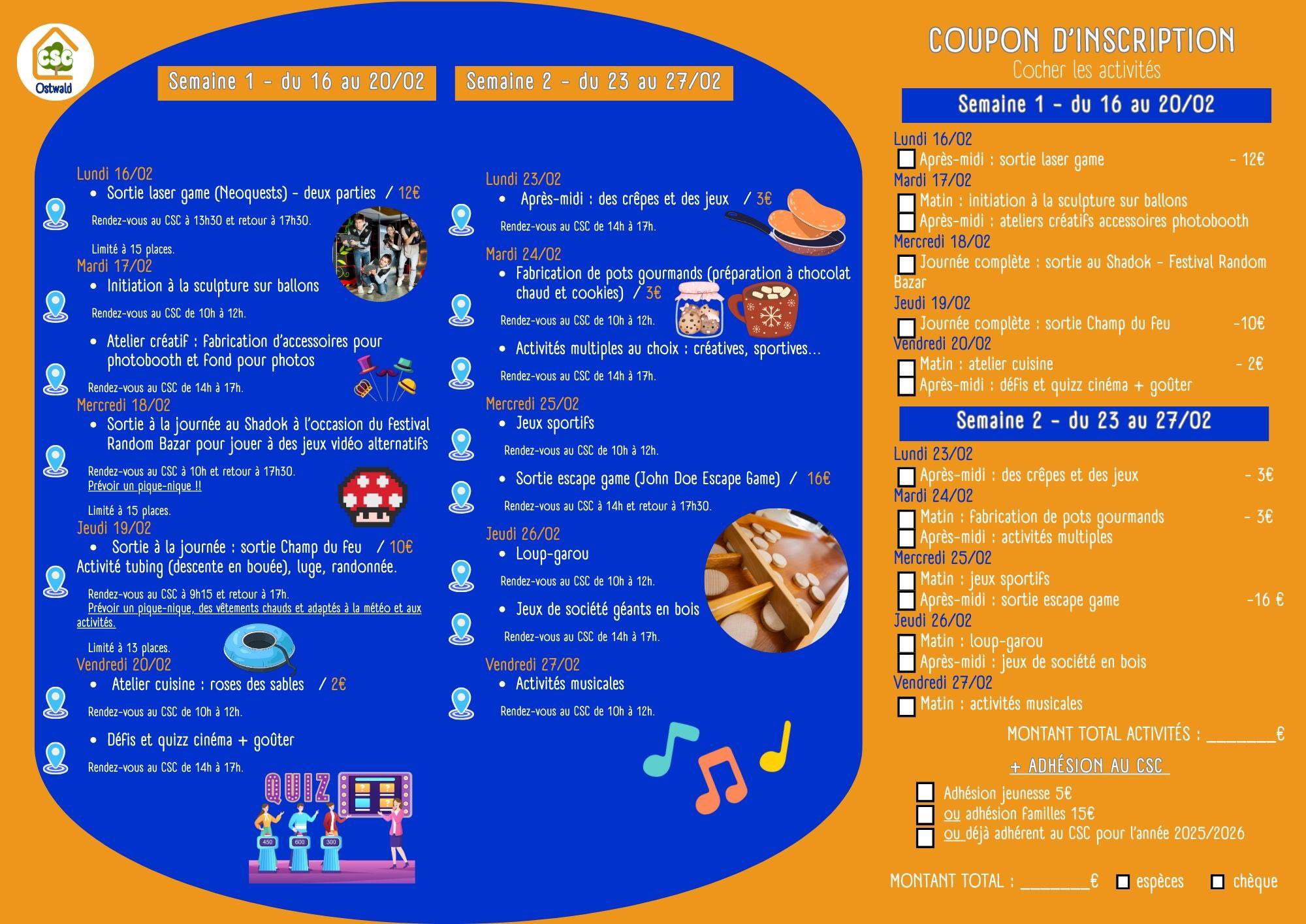JeunesseDécouvrez le programme d’activités des vacances de février, concocté par l’équipe du Centre Social et Culturel (CSC) d’Ostwald, du 16 au 27 février.