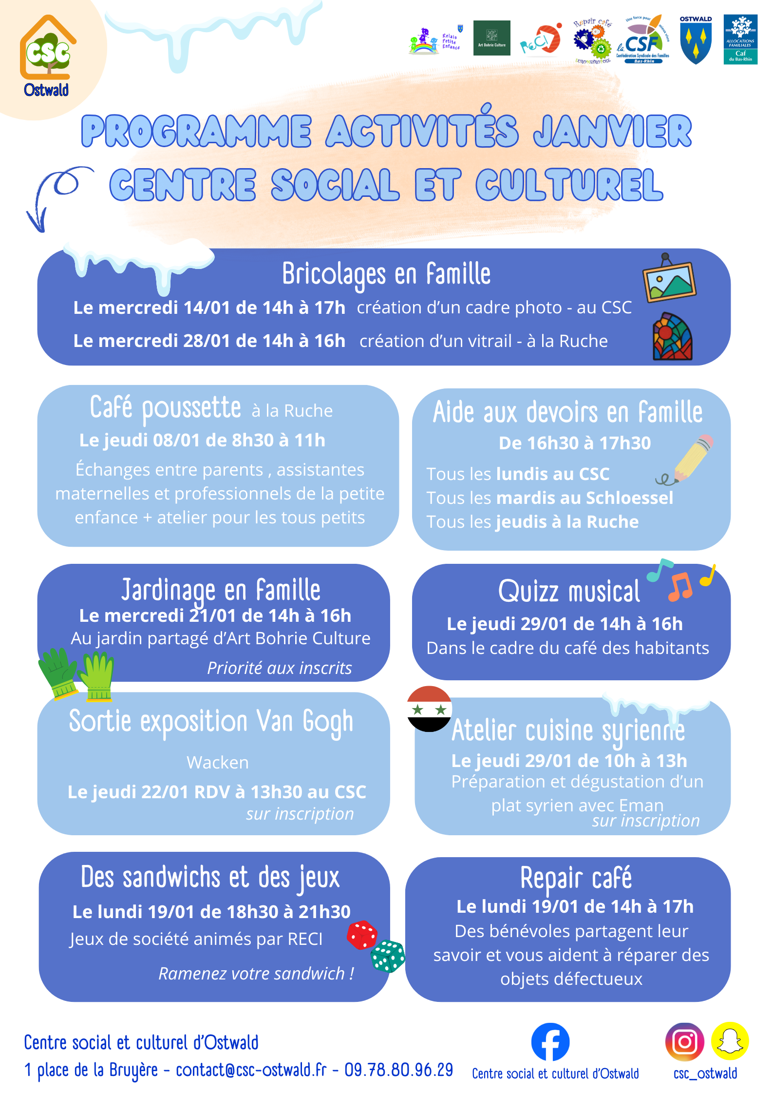 Venez découvrir les activités pour les familles, les ados et tou·te·s les ostwaldois·e·s proposées par le Centre Social et Culturel d’Ostwald pour :